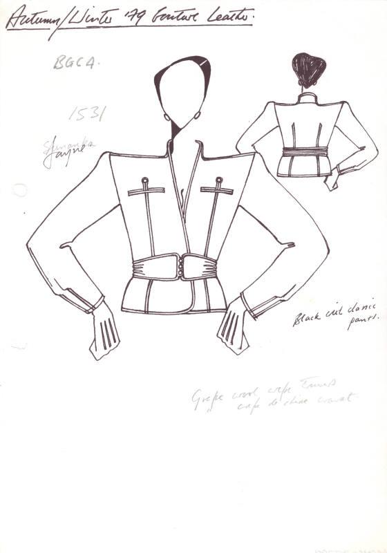 Drawing Of Short Fitted Leather Jacket For Autumn/Winter 1979 Couture